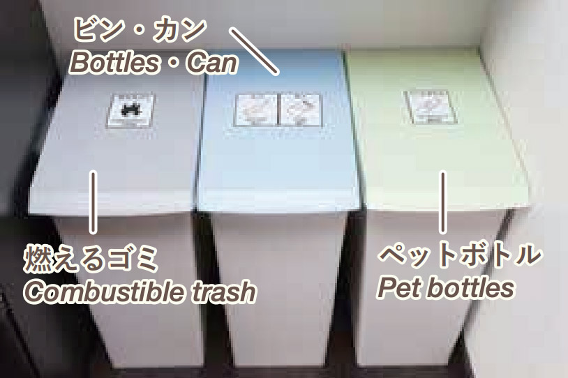 ゴミは分別にご協力いただき、室内にお出しください。チェックアウトの際、ゴミはそのまま室内に置いておいていただけます。ゴミが室内のボックスに収まりきらない場合は、建物裏にある指定の物置に出しておいてください。敷地内の道や近隣のゴミ捨て場には、決して置かないようお願い申し上げます。