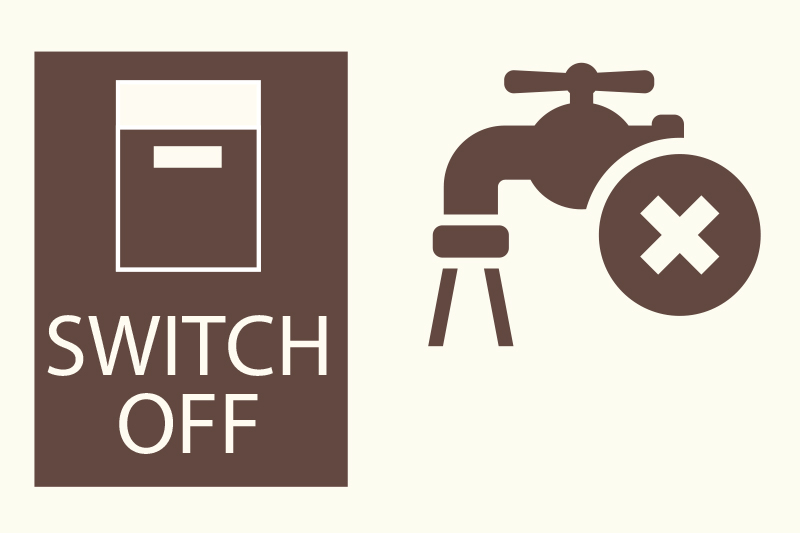 まず、室内にある湯沸かし器のリモコンスイッチを「OFF」にしてください。