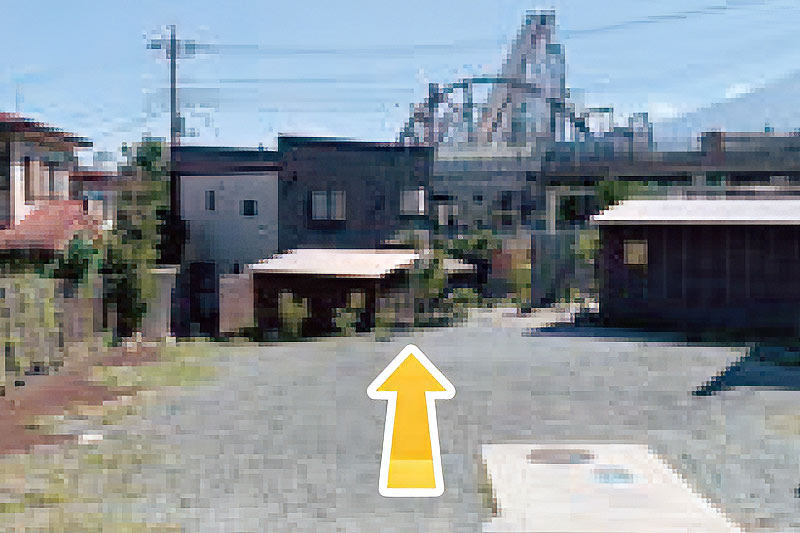 敷地内へ入り、左手がA棟の駐車場となります。矢印の位置に駐車してください。