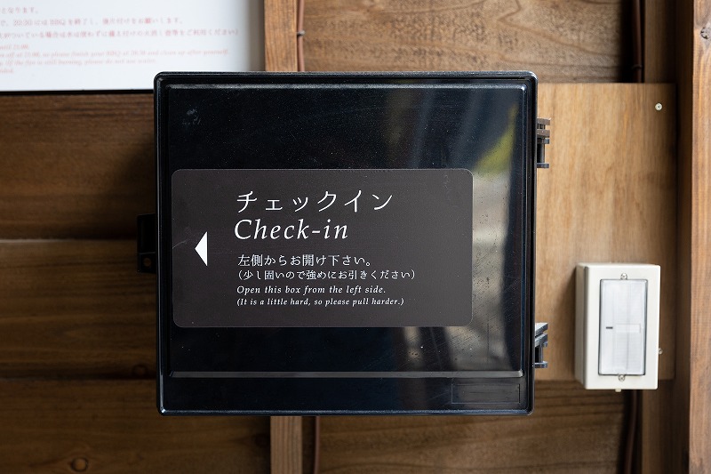 BBQスペースへ移動し、壁面の黒いボックスをお探しください。ボックスの左側から、蓋を開けていただけます。