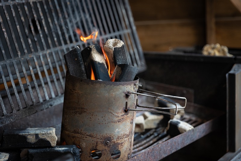 火気の取り扱いには十分ご注意ください。BBQ終了後は、コンロ内の火が完全に消えたことを確認するか、炭を専用の火消し壺へ移動させてからお部屋へお戻りください。